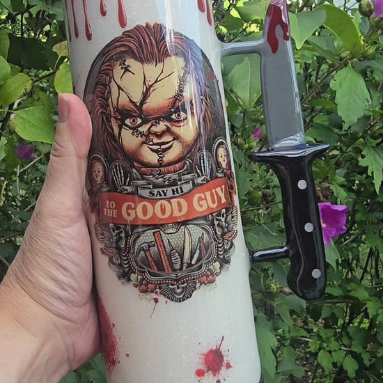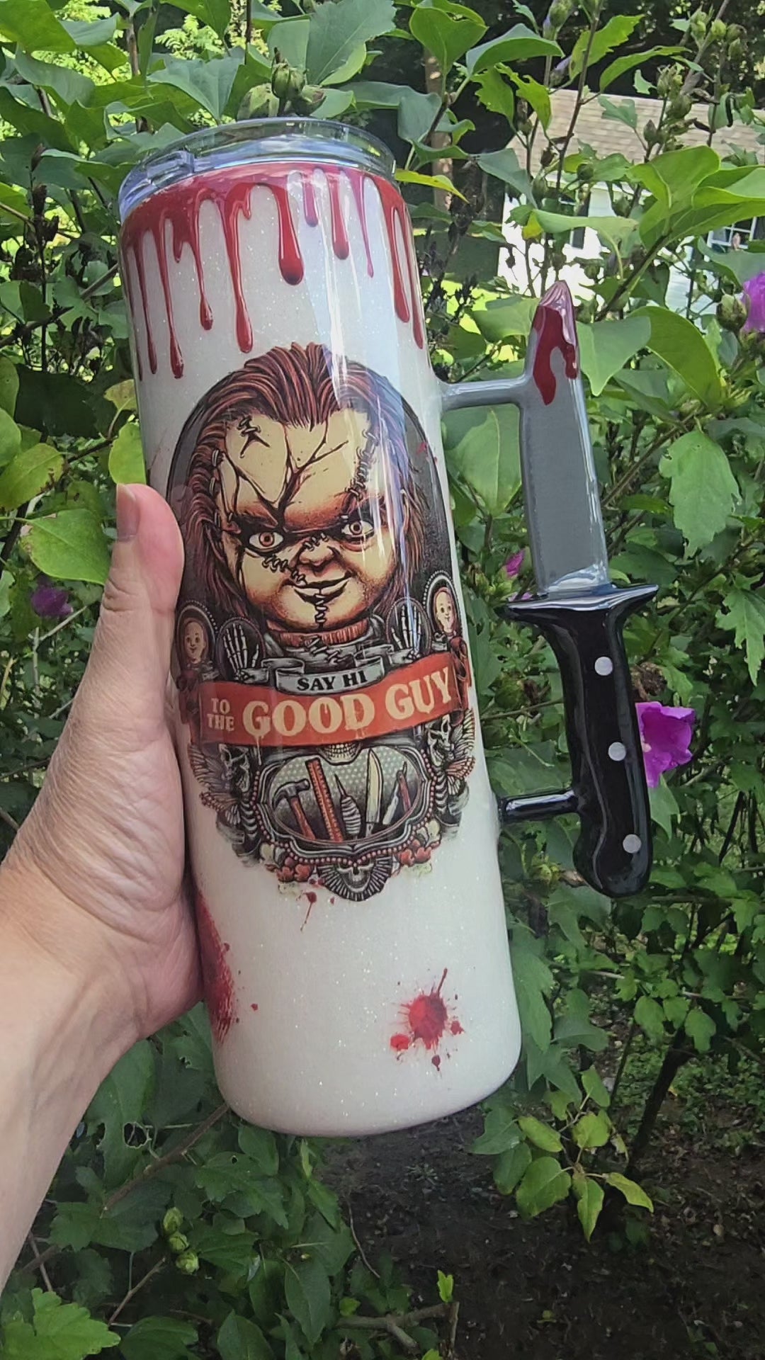 This 30oz tumbler is killer⦠literally. š Featuring bloody drip details, a bold Chucky graphic, and a knife-handle design, this oneās for the ultimate horror fan!