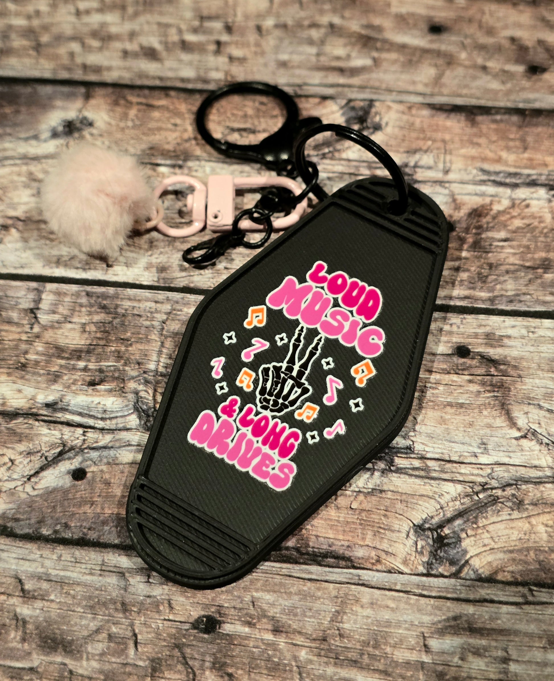 Turn up the music and chase the open road. This 3D printed motel-style keychain features a sleek black base with bold retro lettering and playful music details that capture the carefree spirit of loud playlists and long drives. Lightweight yet durable, itโs perfect for keys, bags, backpacks, or gifting your favorite music lover, because the best memories start with loud music and long drives. ๐๐ถ