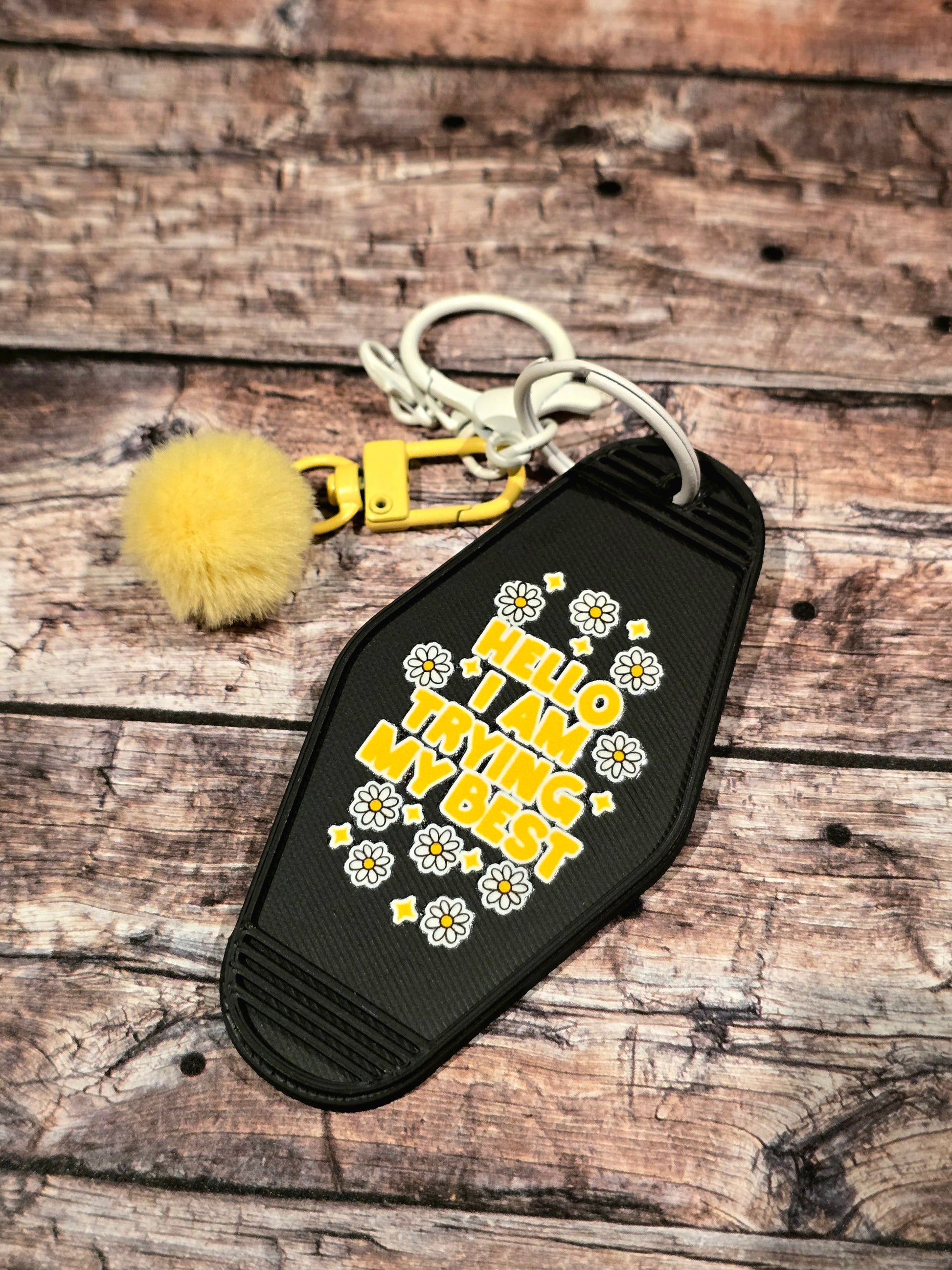 A gentle reminder you can carry everywhere. This 3D printed motel-style keychain features a sleek black base with cheerful yellow lettering and daisy accents that celebrate progress, effort, and showing up every day. Lightweight yet durable, it’s perfect for keys, bags, backpacks, or gifting someone who needs a little encouragement.